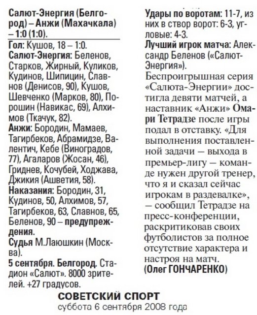 Игры "Анжи" 5 сентября 2007г. СКА-"Энергия" (Хабаровск) - "Анжи" (Махачкала) 1:0 Скрытый текст